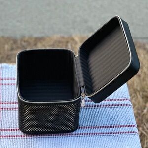 It has a top handle that makes it easy to carry the box around. It has a double zipper.