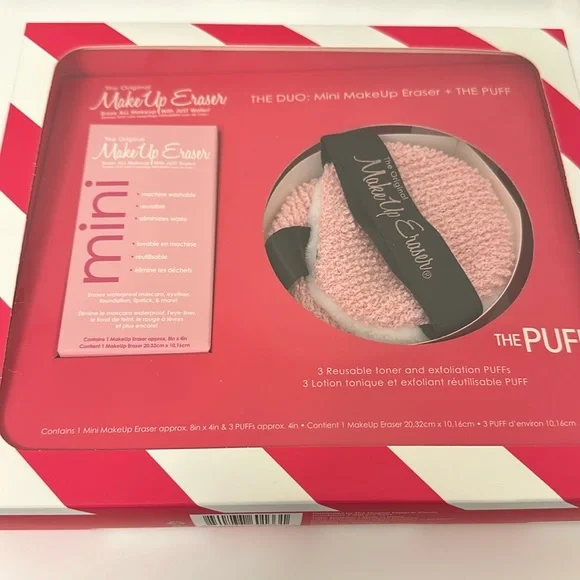 1 mini makeup eraser and 3 puffs