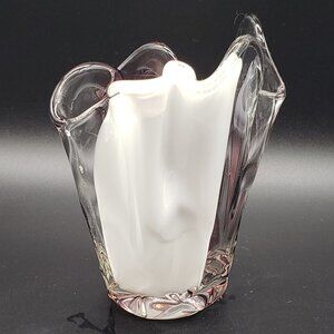 Makora Krosno Clear White Amethyst Blown Art Hankerchief Glass Vase