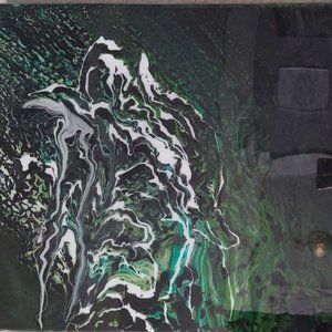 16x20in one-of-a-kind original. Sealed with resin on wrapped canvas. A great conversation piece.