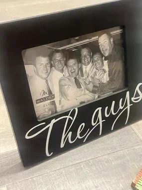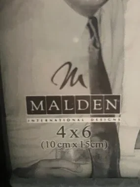 Simple tabletop photo frame featuring the Malden logo. Clean black finish around a rectangular opening. Subtle logo detail in the insert. Classic and unobtrusive display piece.