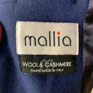 Mallia 90% wool 10% cashmere double breasted pea coat, cobalt blue, size 14