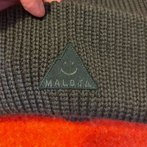 Maloja mossy green 100% lambswool happy mountain emblem ribbed tuque hat NWT