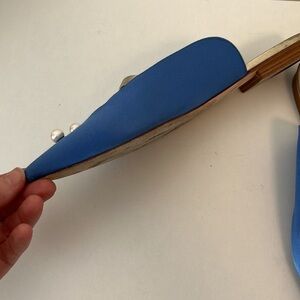 The tip of the shoes underneath are a bit worn but not noticeable from the top, only when you turn them over.