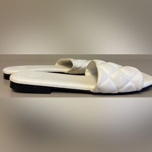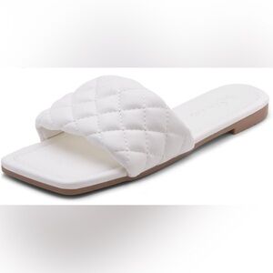 Description: These white quilted sandals, featuring a soft, textured design and an open-toe style perfect for casual wear.