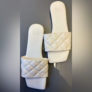 Malvados White Quilted Open-Toe Faux Leather near flat Sandals women's size 8