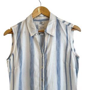 Malvin White and Blue Stripe Linen Sleeveless Mini Shirt Dress Size Small