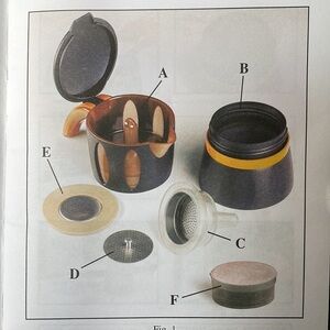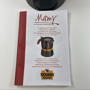 Microwaveable Coffee pot system made in Italy. Never used. Great for office. Doesn’t come with F Filter - see picture #4 comes with instruction book. Great YouTube videos on line to show how to use.