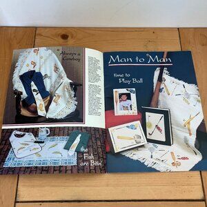 The Fun Art of Stenciling Vol 3: Man to Man #09427 (1993) by Nancy Tribolet. Book has instructions to use various stencils (not included) to apply designs to clothing, tote bags, books, picture frames & more. Book instructions have the stencil design numbers required with the suggested Delta paint colors. Note that this is the instruction book only and doesn't include the required stencils that were sold separately. 20 pages, 8 1/2" x 11".