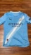Light blue Manchester City jersey featuring white diagonal stripes. Puma logo on chest. Team emblem and sponsor displayed.25/26 season home jersey.