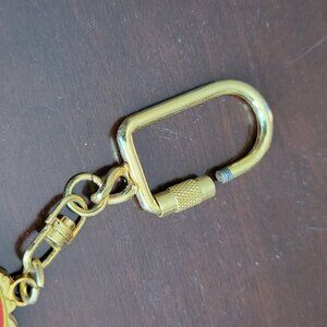 Manchester United Keychain Official Merchandise Keyring Gold Colour with Screw On Clasp. Shows some wear on the clasp. Bright Red Yellow Logo Man United MUFC English Premier League EPL Soccer Football Beckham Ronaldo