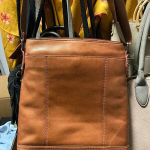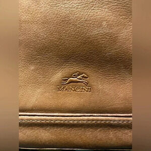 Mancini | BROWN LEATHER UNISEX CROSSBODY TABLET BAG • Adjustable strap