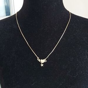 This gold plated necklace is covered in tiny crystals that make it just shimmer. Adjustable chain at 18" - 20".