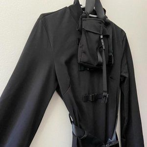 Crazy techwear / darkwear matrix style dress with squeeze buckles for an adjustable fit. Comes with detachable side bag