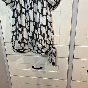 Mandee.size Small. Top. Patterned. Semi sheer overlay. Tie at hem. Chest. 36” Length. 24”