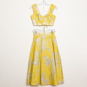 Mandi Line Jacquard Dress Lace Up Top Midi Skirt Set Embellished Yellow XS/S