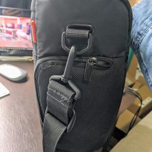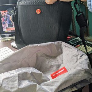 Roomy camera bag. It has external waterproof cover for rainy days, and you can easily fit up to 3x lenses. The interior has customizable cushioned separators.