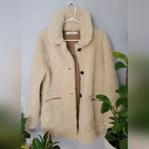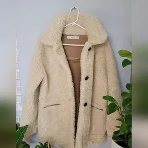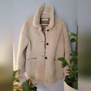 Warm comfortable sherpa jacket by Mango. Size Xs but fits bigger. It has 3 wood buttons that adds character to this piece.