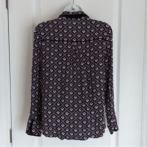 Mango Abstract Print Navy Pink Blouse With Bow Tie Neck Top Viscose XS @V