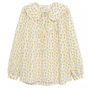 100% Cotton, Printed design, Baby doll neck, Neck closure, Long puffed sleeves.