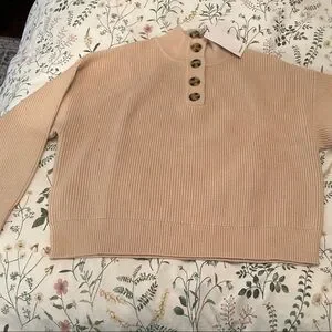 MANGO NWT, Stylish beige ribbed sweater featuring button detail on the front. Perfect for a cozy and chic look.