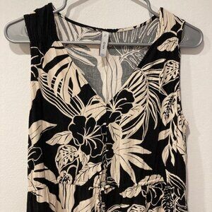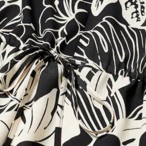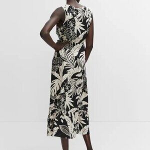 Mango Black & Cream Floral Printed Midi Dress