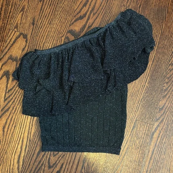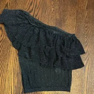 Chic off-shoulder sweater with ruffle detail. Perfect for stylish outings.