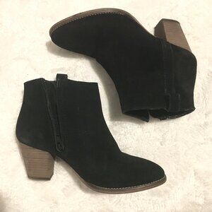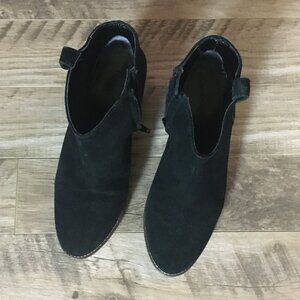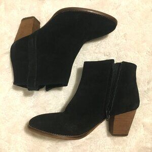 Mango Black Suede and Faux Wood Heeled Ankle Booties