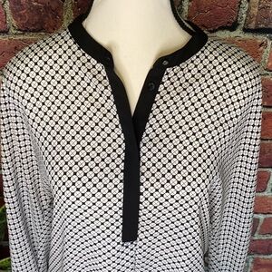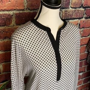 Mango Black & White Long Sleeve Pull Over Blouse Size XS