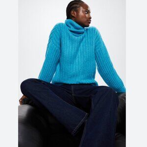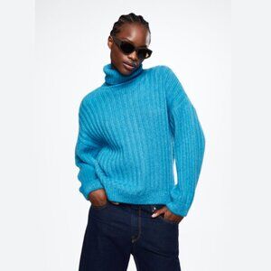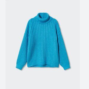 Mango Blue Chunky Turtleneck Sweater – Soft Knit Pullover Size XS