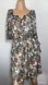 This is a pre-owned dress by Mango Collection. It features a cream-colored background with a paisley pattern in shades of blue, orange, and brown. The dress has a round neckline trimmed with navy blue fabric, three-quarter cinched sleeves, and a gathered waist with a matching tie. The material appears to be a lightweight fabric. There are no immediately visible stains or tears.