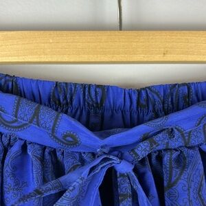 Mango Bohemian Paisley Floral Tie Waist A Line Pockets Maxi Skirt Small Blue