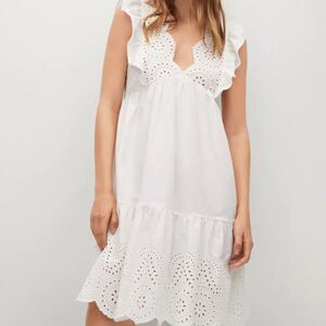 Mango Broderie anglaise Women's cotton dress White.