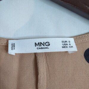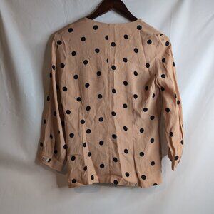 Mango Casual Women's Tan Blouse w/ Black Polkadots, Size 4 (EUR S)