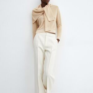 This Mango sweater in a soft cream hue features a classic crew neckline and a minimalist design. Crafted from a medium-weight knit, it offers a comfortable fit with its long sleeves and cropped length. The ribbed trim at the neckline, cuffs, and hem adds a touch of sophistication to this versatile piece.