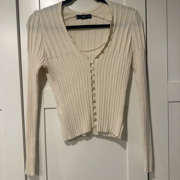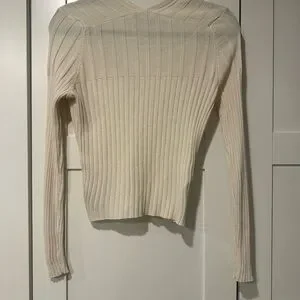 Elegant ribbed blouse with button-up front. Long sleeves. V-neck design. Worn with jeans and skirts to make cute flirty fall fits!