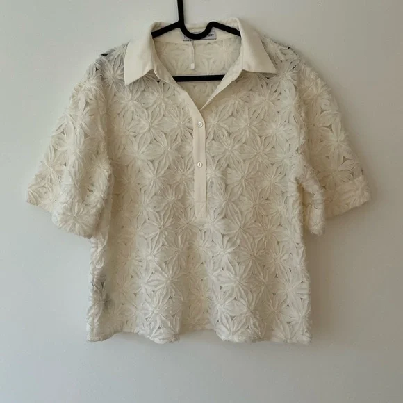 Mango Cream Textured Blouse