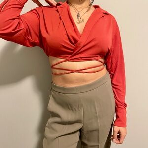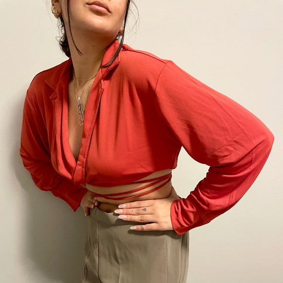 Mango orange crop top in medium, will also fit small. Very stylish, can dress up or down. Easy to maintain and comfortable fit. Fits sizes 2-4.