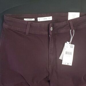 New with tag. Stylish clotted jeans in deep wine color. Professional photos reflect color most accurately (last w has some overexposure making the color look lighter). Cotton denim fabric, 1% elastic.
