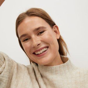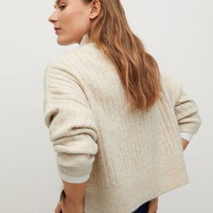 Cable knit fabric, Wide design, High collar, Dropped shoulder seams, Long sleeve