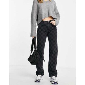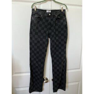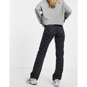 Mango Jeans Womens 8 Straight Leg Check Checkered Denim Black Gray