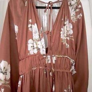 Gorgeous chocolate Mango jumpsuit Size XL lightweight “silky” polyester wide legs zipper at back to waist, ties at back . Worn once