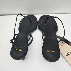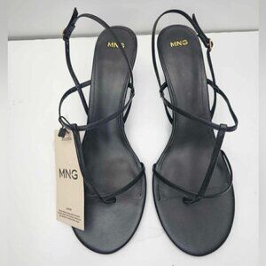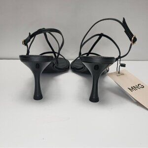 Mango - Ladies Heeled Leather Sandal with Straps - Black. Size: 9.5 (US). NWT
