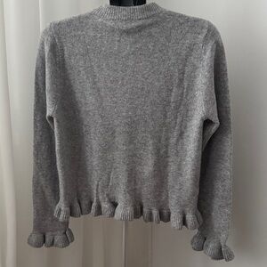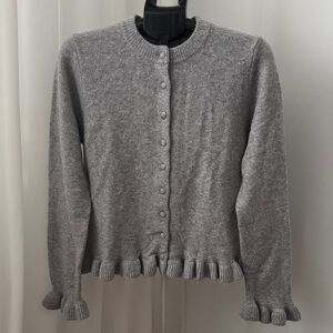 Mango Light Gray Button-Up Ruffle Hem Cardigan