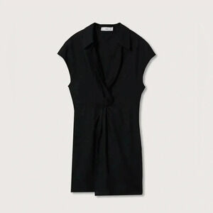 Linen mix. Short design. Straight design. Shirt-style collar. Sleeveless. Knot detail. Side zip fastening.