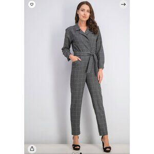 Mango MNG Grey Window Pane Print Jumpsuit L