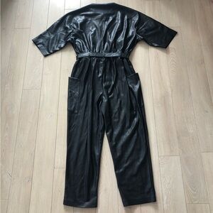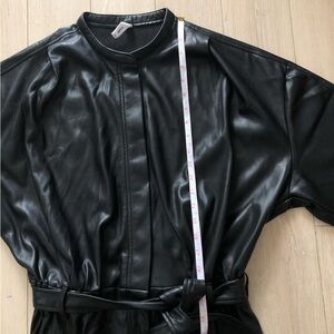 Mango MNG Play Suit Leather Tie Waist Jumpsuit in Black size L