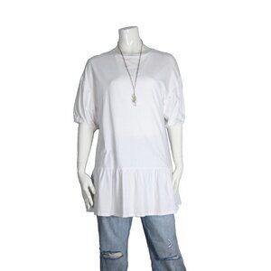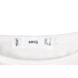 Mango MNG Women's US4 Small White T-Shirt Puff Sleeve Organic Cotton Tunic Top