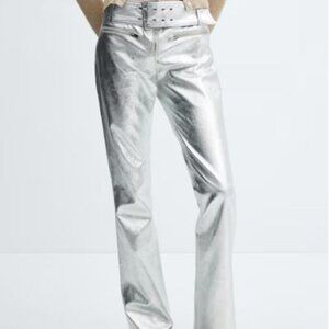 Mango Metallic Pants with Belt