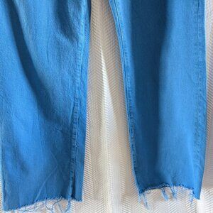 Make a bold statement with these vibrant blue Mango 'Nora' jeans! Crafted from 100% cotton, these high-rise, wide-leg jeans offer both comfort and undeniable style. The eye-catching hue and modern distressed hem add a touch of cool-girl flair. Perfect for elevating your casual look, pair them with a simple tee and sneakers for an effortless vibe, or dress them up with a blouse and heels. A must-have for anyone looking to add a pop of color and a relaxed, fashion-forward silhouette to their wardrobe. Size 10.